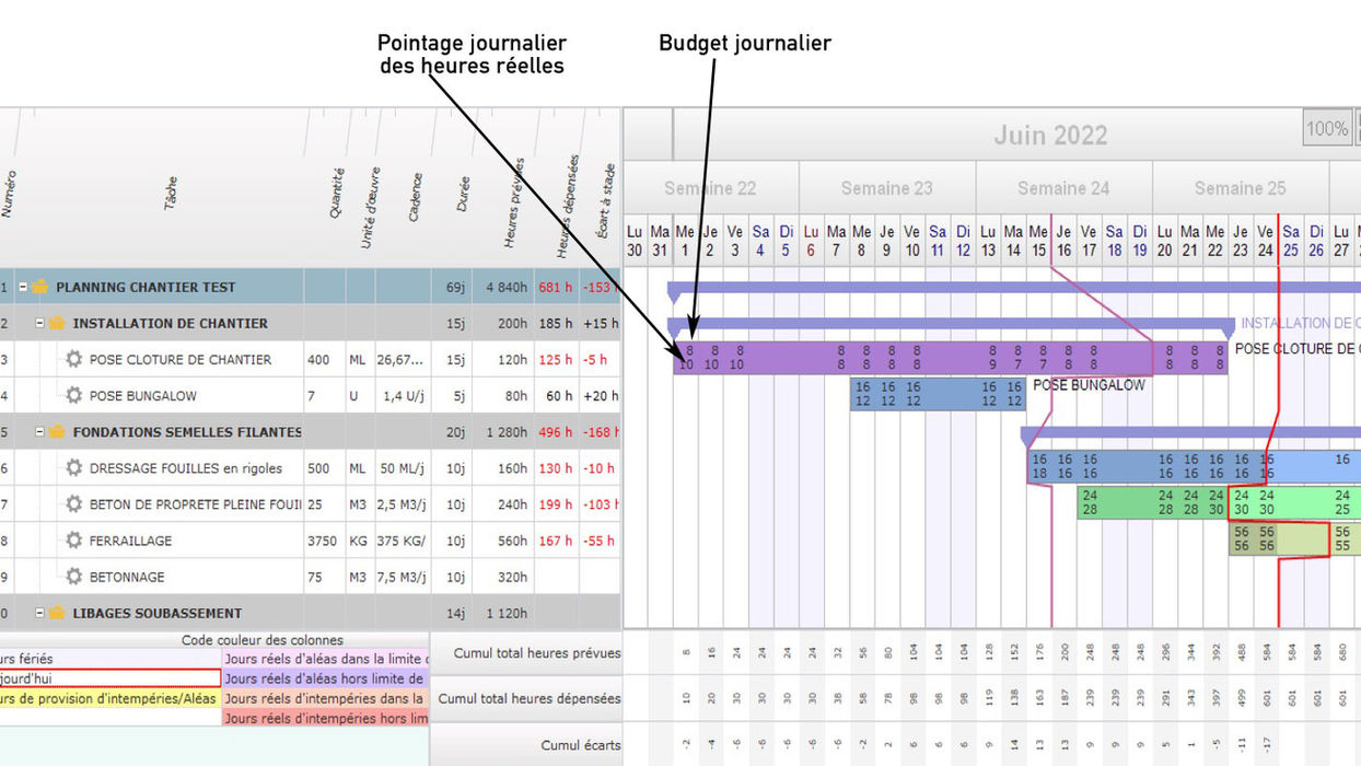Outil conforme aux pratiques de gestion des chantiers BTP.